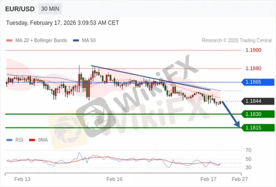 交易策略: 在 1.1865 之下,看跌,目标价位为 1.1830 ,然后为 1.1815。