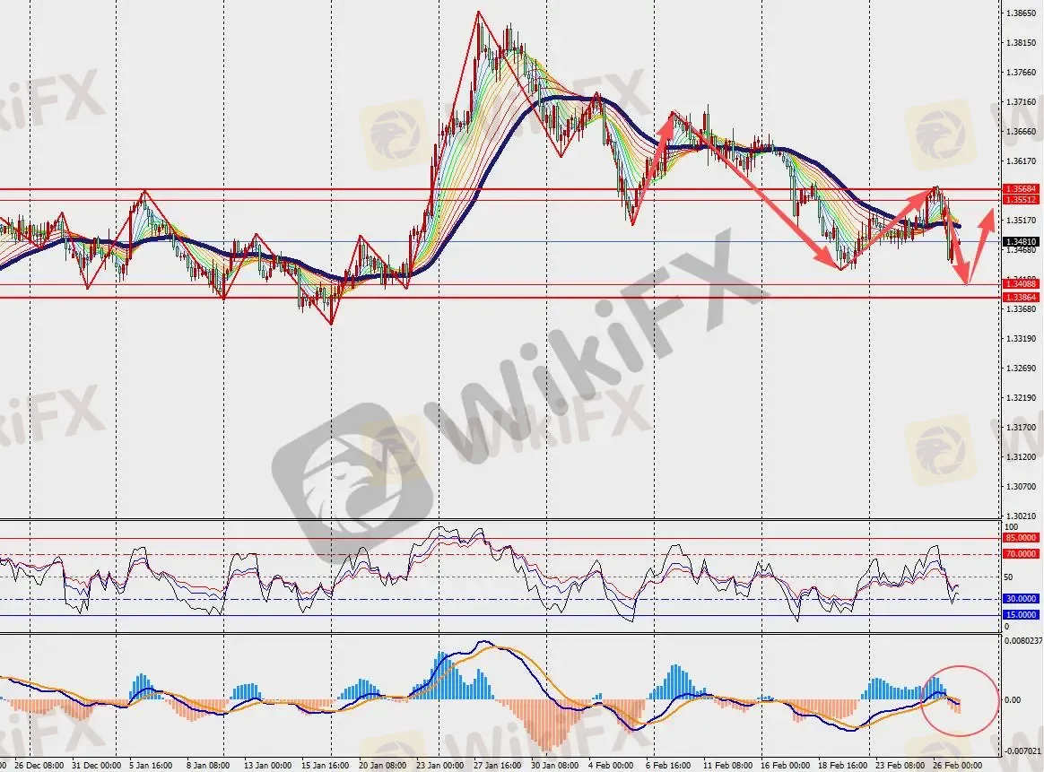第一阻力位:1.3540 第一支撑位:1.3430