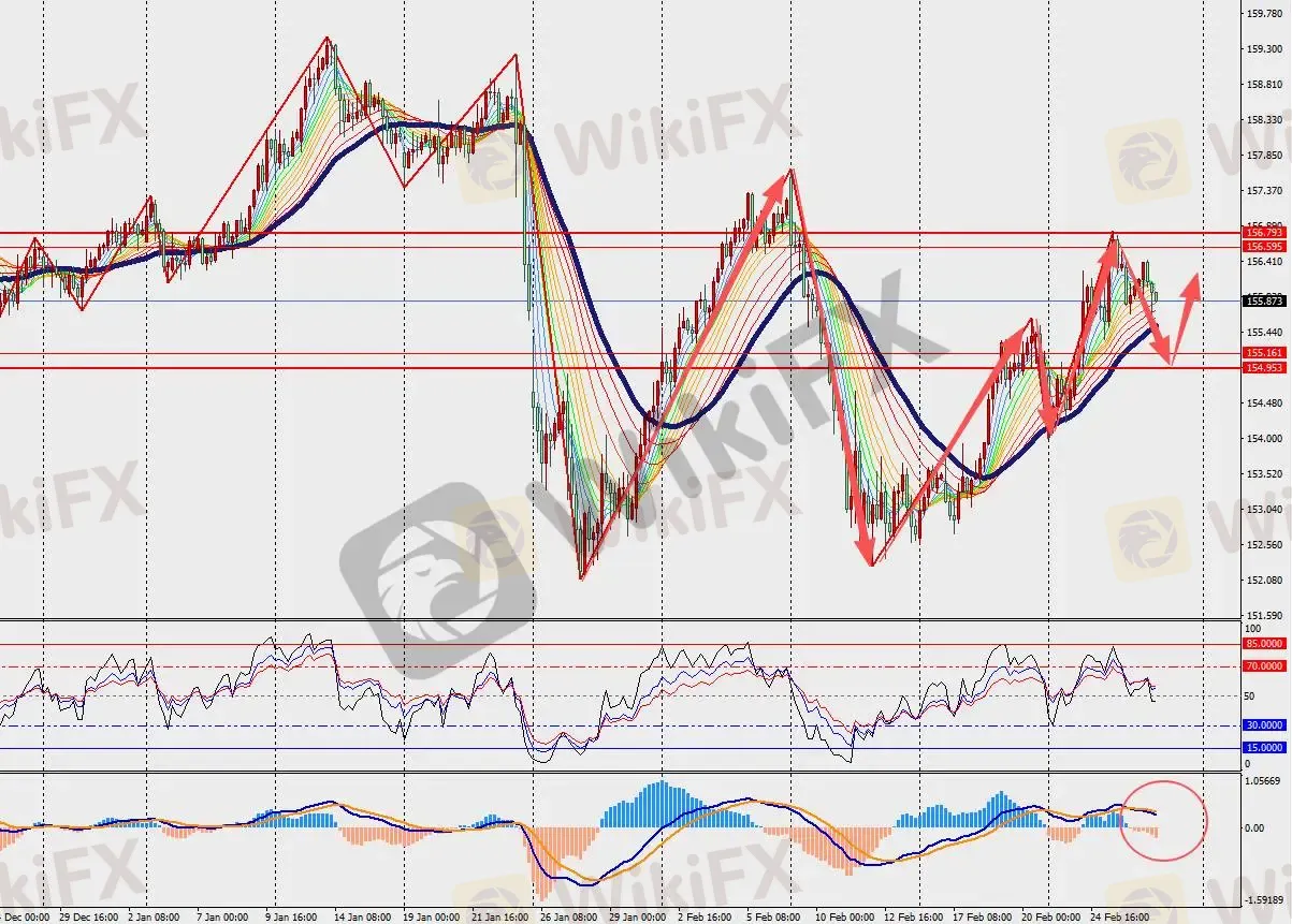 第一阻力位:156.70 第一支撑位:155.00