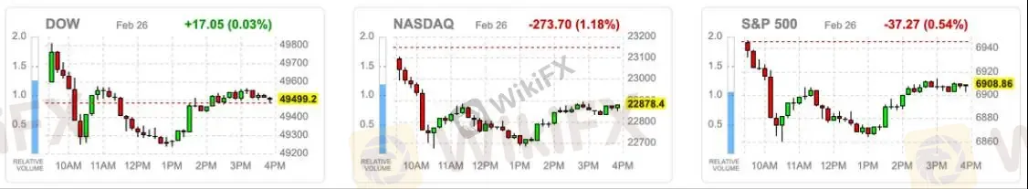 摘要:大盘回顾英伟达拖累科技板块,地缘缓和压制油价,AI分化加剧隔夜市场在多重消息交织下呈现明显分化格局。伊朗与美国在日内瓦的间接谈判释放“取得重大进展”“接近共识”的信号,地缘风险阶段性降温,布伦特原油盘中冲高后回落至71美元附近,能源板块涨势收敛。与此同时,特朗普政府被曝正研究在最高法院裁定部分关税“非法征收”后保留关税收入的法律路径,贸易政策不确定性仍在。货币政策层面分歧依旧。美联储理事米兰重申2