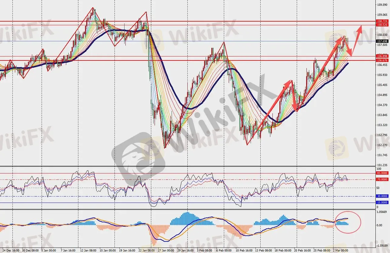 第一阻力位:158.50 第一支撑位:157.00