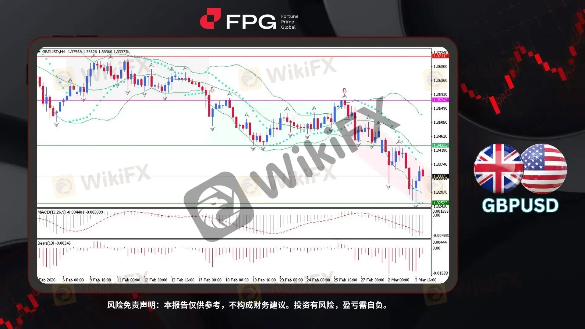 风险管理:若价格有效突破并收于1.3433上方,则下降通道结构将被破坏,需要重新评估当前的看空判断。