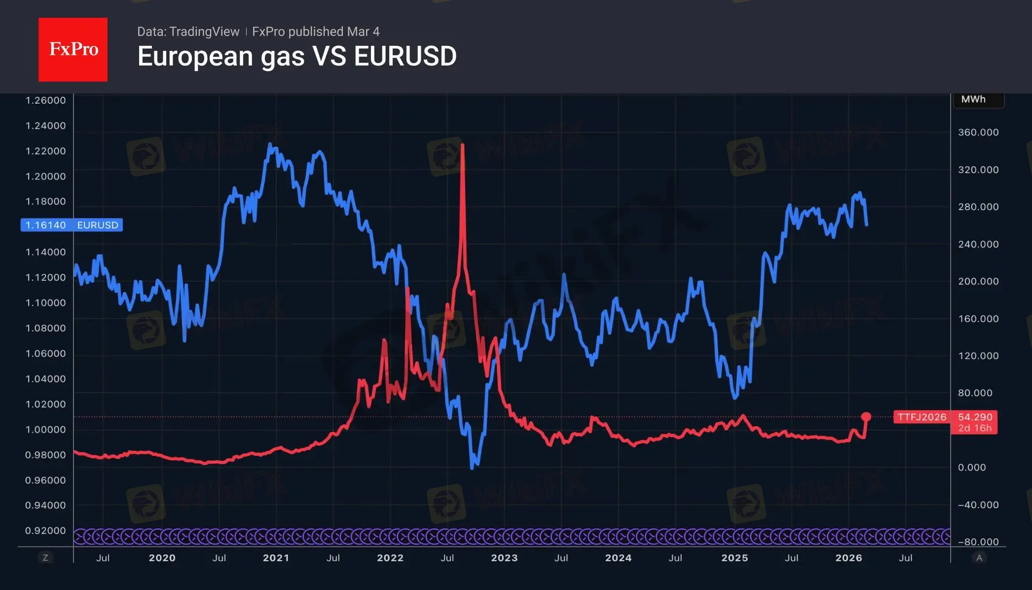 美元在避险资产中的主导地位再次被验证。与此同时,市场对美元融资需求的持续增长推动美元指数进一步走高。而欧元却因欧洲能源危机可能重演的担忧而承压——天然气价格已飙升至每兆瓦时65欧元,虽远不及2022年345欧元的历史峰值,但中东冲突每延长一日,都将为欧洲经济增添新的问题。