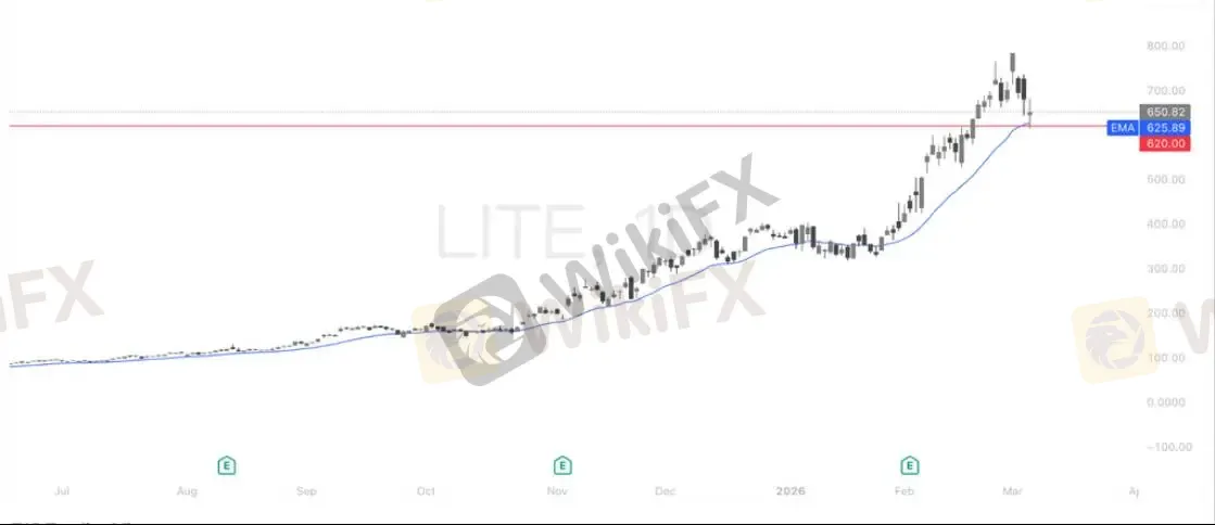 技术面LITE回踩620关键位置(20日均线)反弹,多头格局未变,在光通信需求不断扩大下,有望继续拉升。