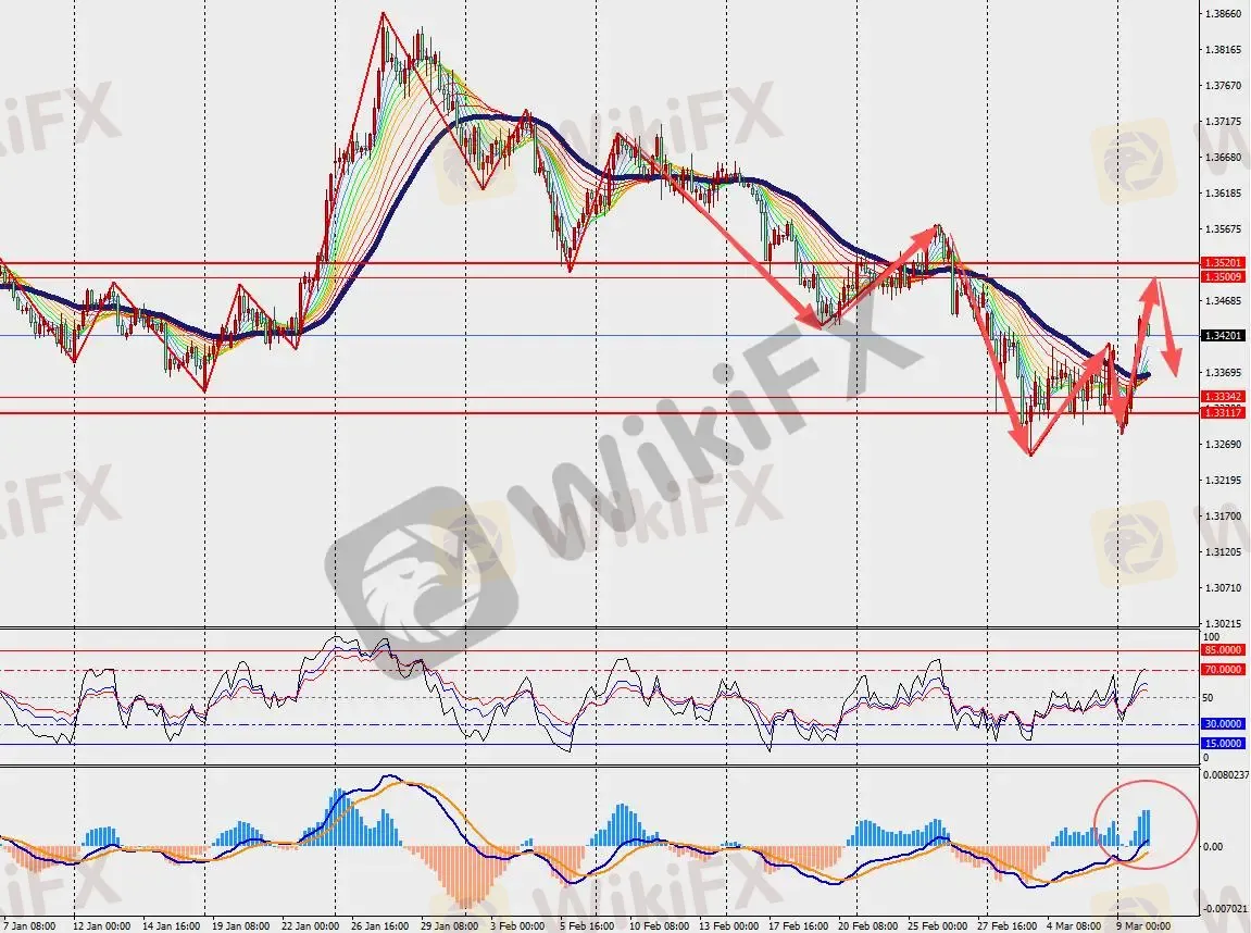 第二阻力位:1.3520 第二支撑位:1.3310