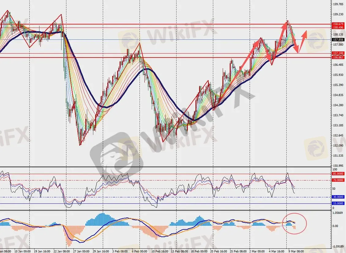 技术面:美元兑日元H4级别下跌反弹,并在48日多空分界线上方运行。此外,MACD双线和量能柱在零轴上方扩张。日本释放举措若引发国际能源署协调压力,可能带来短期不确定性,放大汇率波动幅度。