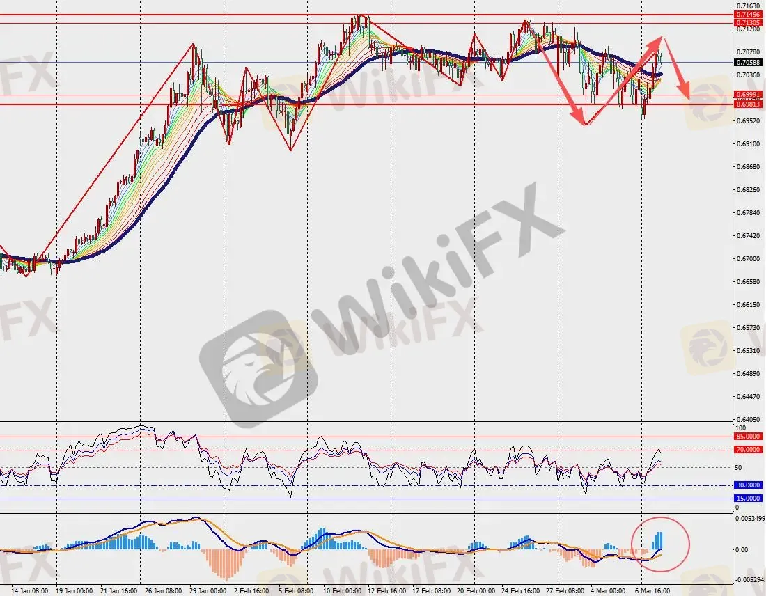 第一阻力位:0.7100 第一支撑位:0.7010