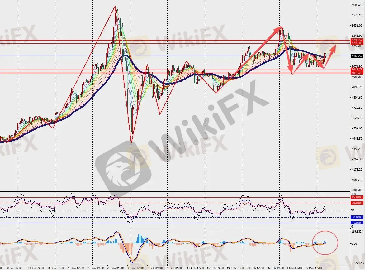 第一阻力位:5185.00 第一支撑位:5150.00