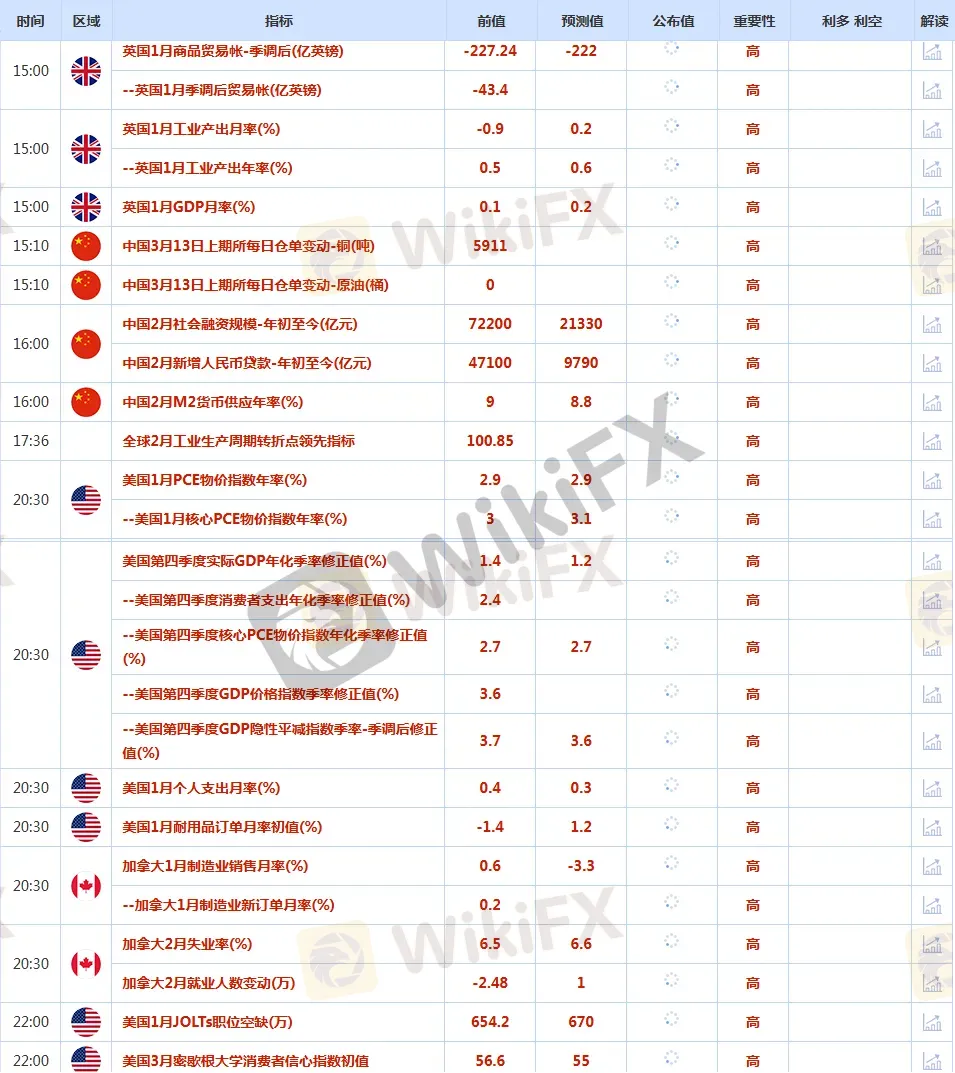 前日公布数据与消息: