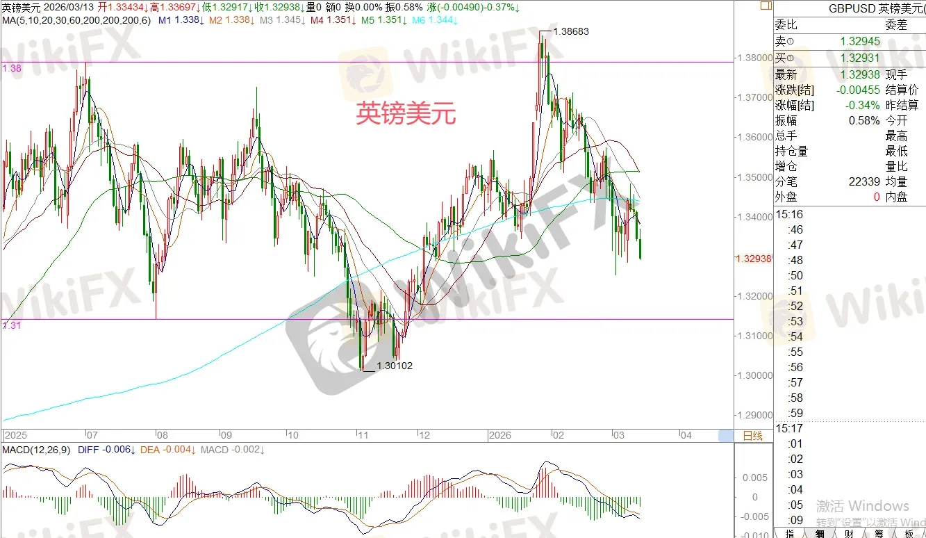 支撑位:1.3310-1.3265-1.3235-1.32-1.3170-1.3085-1.3020
