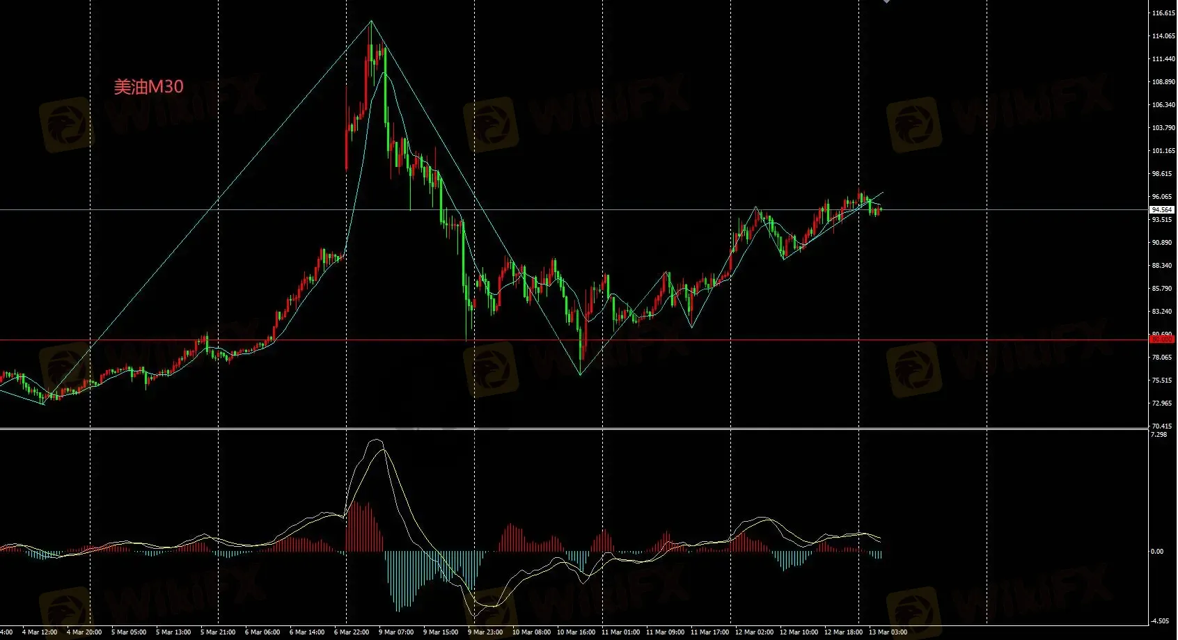 美油M30日内震荡操作思路操作;尽管近期震荡加剧,但油价供应紧张的基本面将持续。