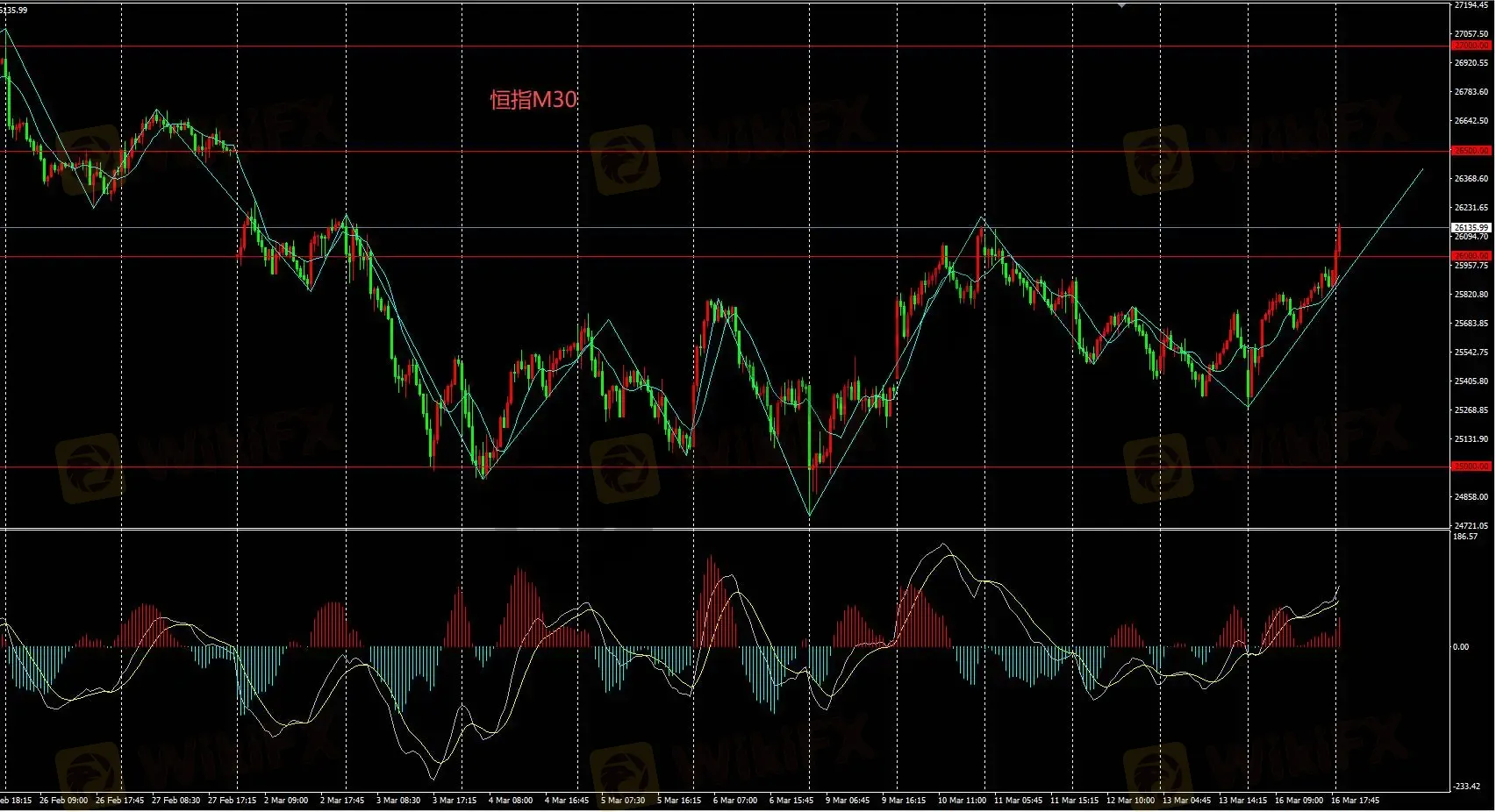 恒指M30昨日的拉升走势已确立目前的多头走势,日内持续看多,下方关键位置26000。