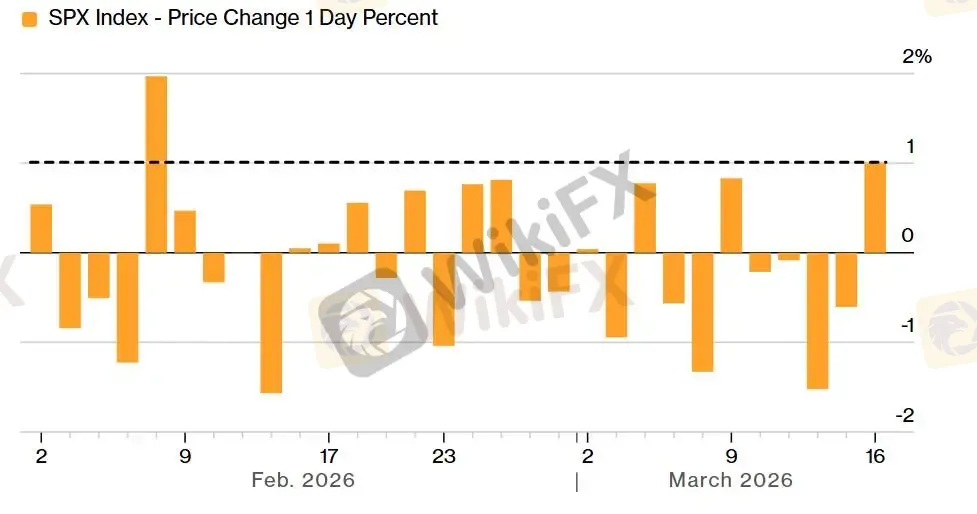 标普500指数创下2月以来最佳单日表现,科技股领涨。英伟达股价上涨1.7%,此前该公司表示,预计到2027年底,人工智能芯片的收入将至少达到1万亿美元。在其他板块,由于油价下跌缓解了通胀担忧,美国国债价格上涨,而美元则经历了逾一个月以来最糟糕的单日表现。