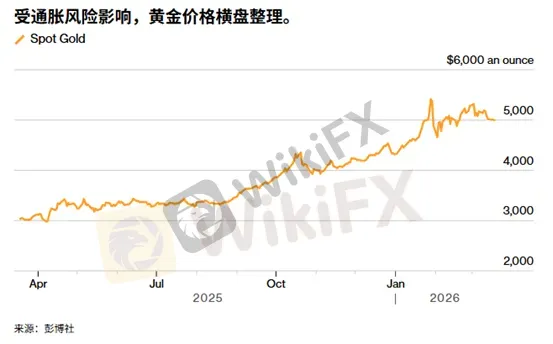 ATFX:由于投资者权衡美联储的降息路径与中东战争带来的通胀风险,黄金价格继续在窄幅区间波动,连续两日的波动低于1.5%。今日亚市,金价维持在每盎司5000美元。周四凌晨的美联储预计将维持利率不变,但投资者仍将密切关注美联储对能源价格上涨和劳动力市场疲软的看法。