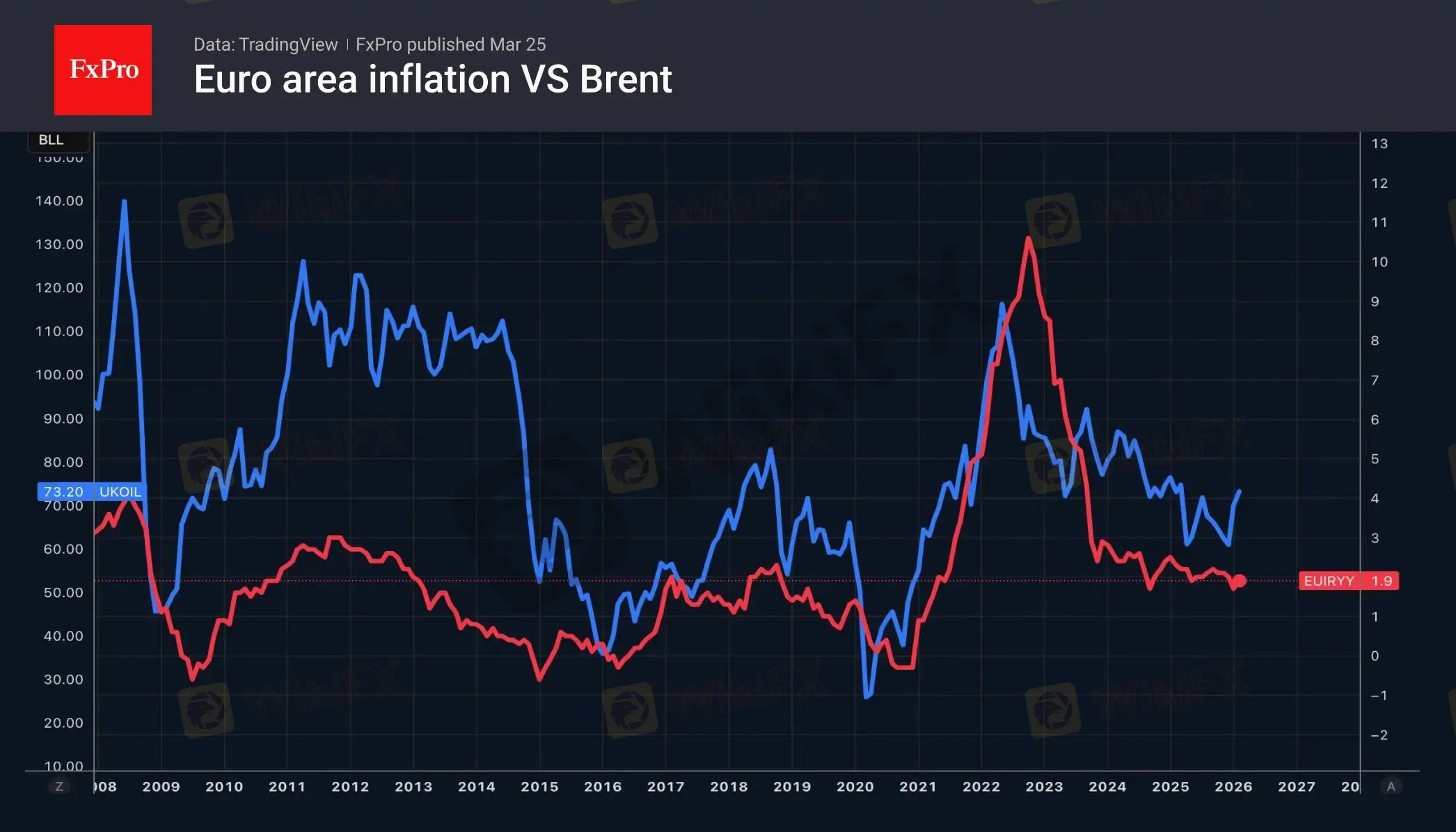 与此同时,由于布伦特原油难以回升至冲突前水平,欧元兑美元的上行空间同样受限 —— 即便霍尔木兹海峡恢复通航也是如此。