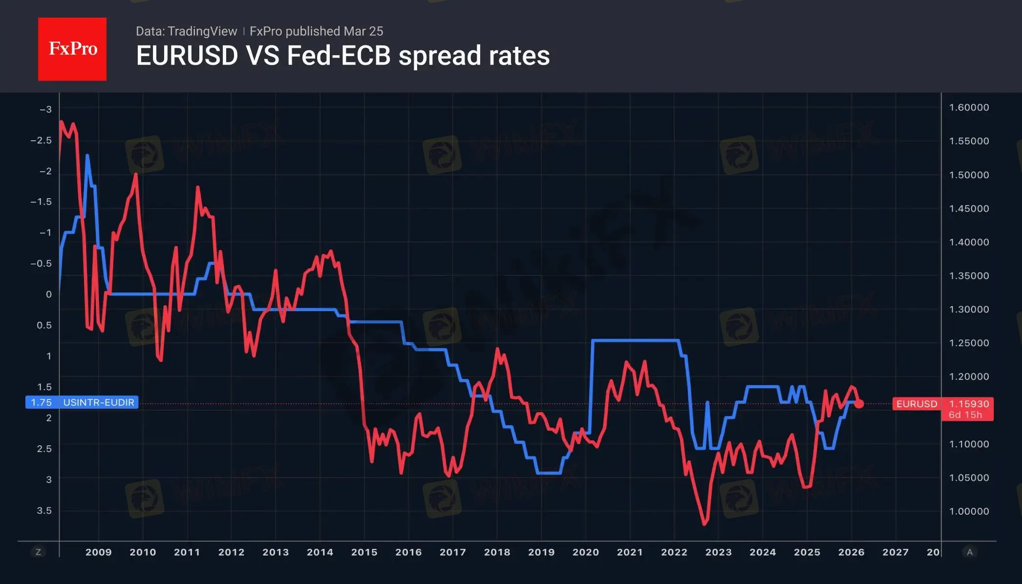 若美伊谈判如期举行且取得建设性成果,欧元兑美元将回归原有驱动空间,首要因素便是货币政策。货币政策分化格局对欧元有利。期货市场预计,美联储将在年底前维持联邦基金利率不变,甚至存在加息可能;而欧洲央行则有可能实施两至三次紧缩操作。但另一方面,这或许可以忽略,如果油价回落,通胀飙升的态势将只是短期存在。