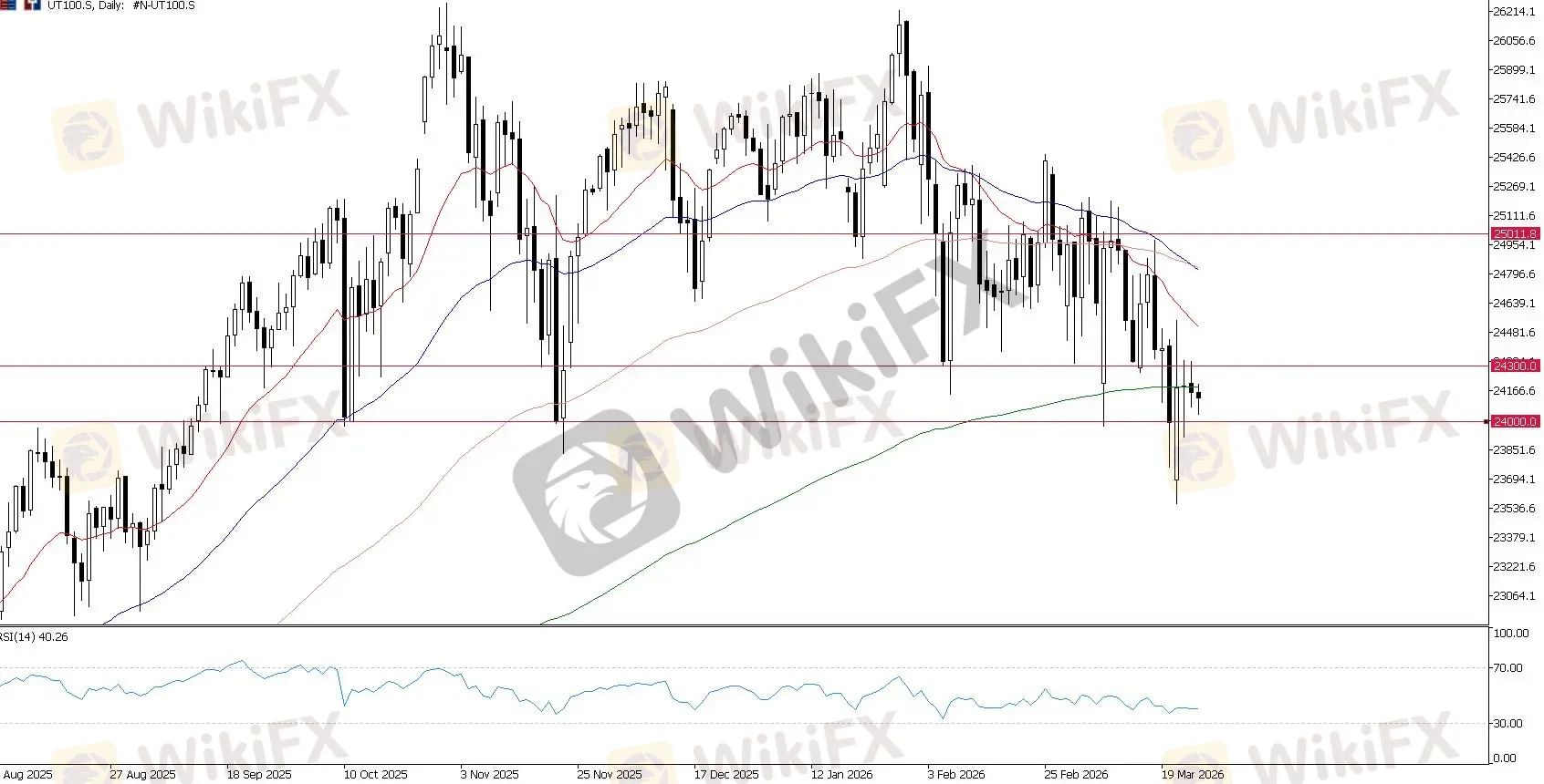 如果抛售动能进一步加速跌破 24,000 至 24,300 区域,该指数将极易引发更深度的恐慌性修正。空头的目标是果断击穿当前的支撑底,并推动指数在更广泛的回调浪中向 23,000 水平滑落。