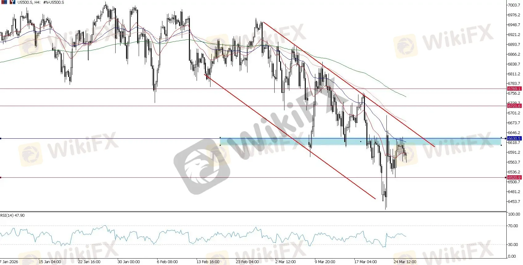 短期内,6,500 至 6,520 区域提供了一个强力支撑。然而,下行压力将持续积聚——特别是如果标普 500 无法重新站稳在 6,630 附近的短期阻力位上方,这将为深度的结构性调整打开大门。
