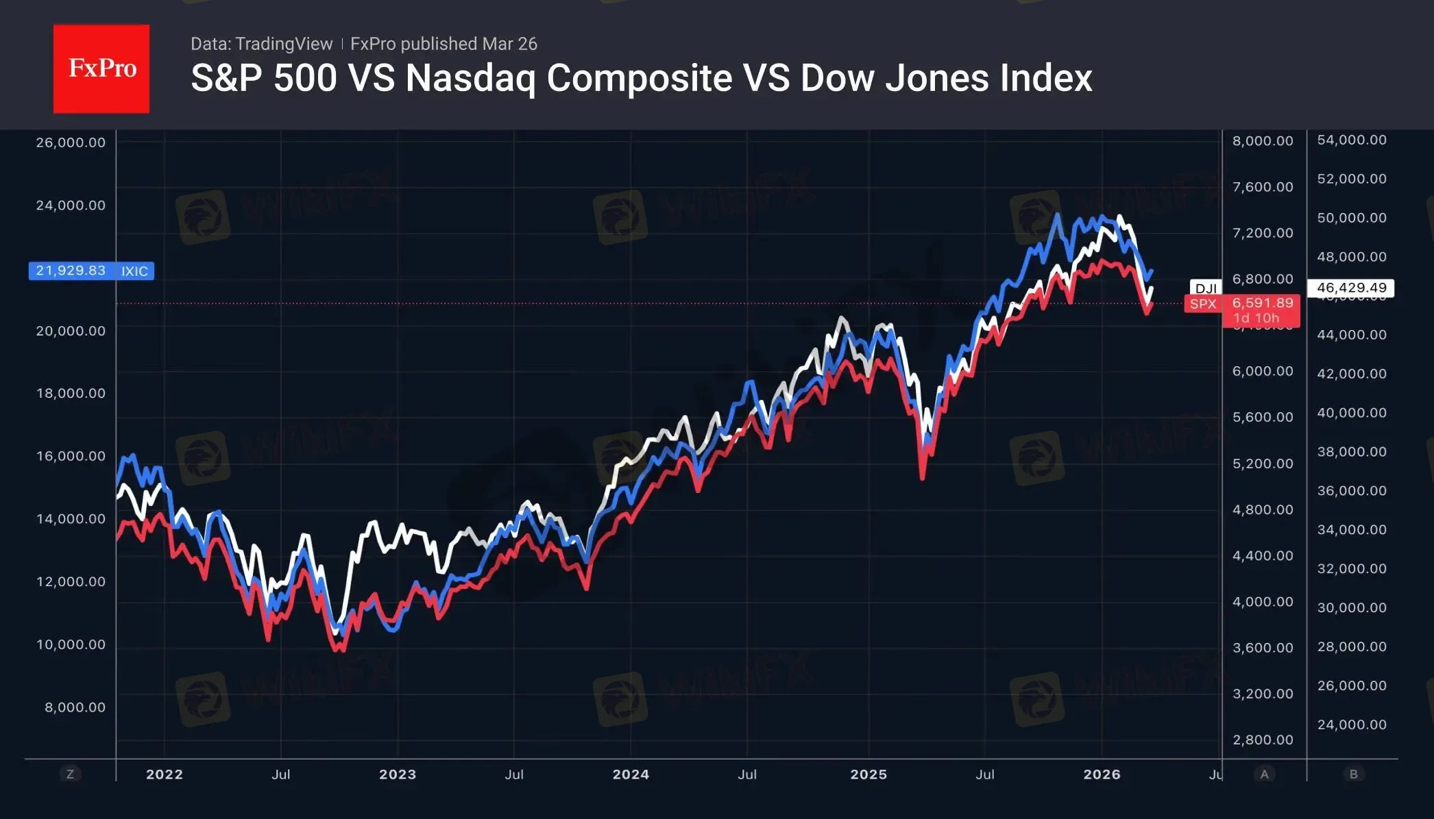 摘要:注:此文章由FxPro高级分析师Alex Kuptsikevich撰写美股依然保持韧性,得益于广泛的投资者信心。地缘政治冲突终将结束,而标普500、纳斯达克和道琼斯指数因强劲的经济与企业盈利而上涨。如果中东紧张局势未能引发滞胀或衰退,且盈利预期保持乐观,那么市场仍有进一步上涨的空间。市场对第一季度企业盈利的共识预测从本轮伊朗相关冲突爆发前的10.9%上调至11.9%,这一变化似乎出人意料。摩根士丹