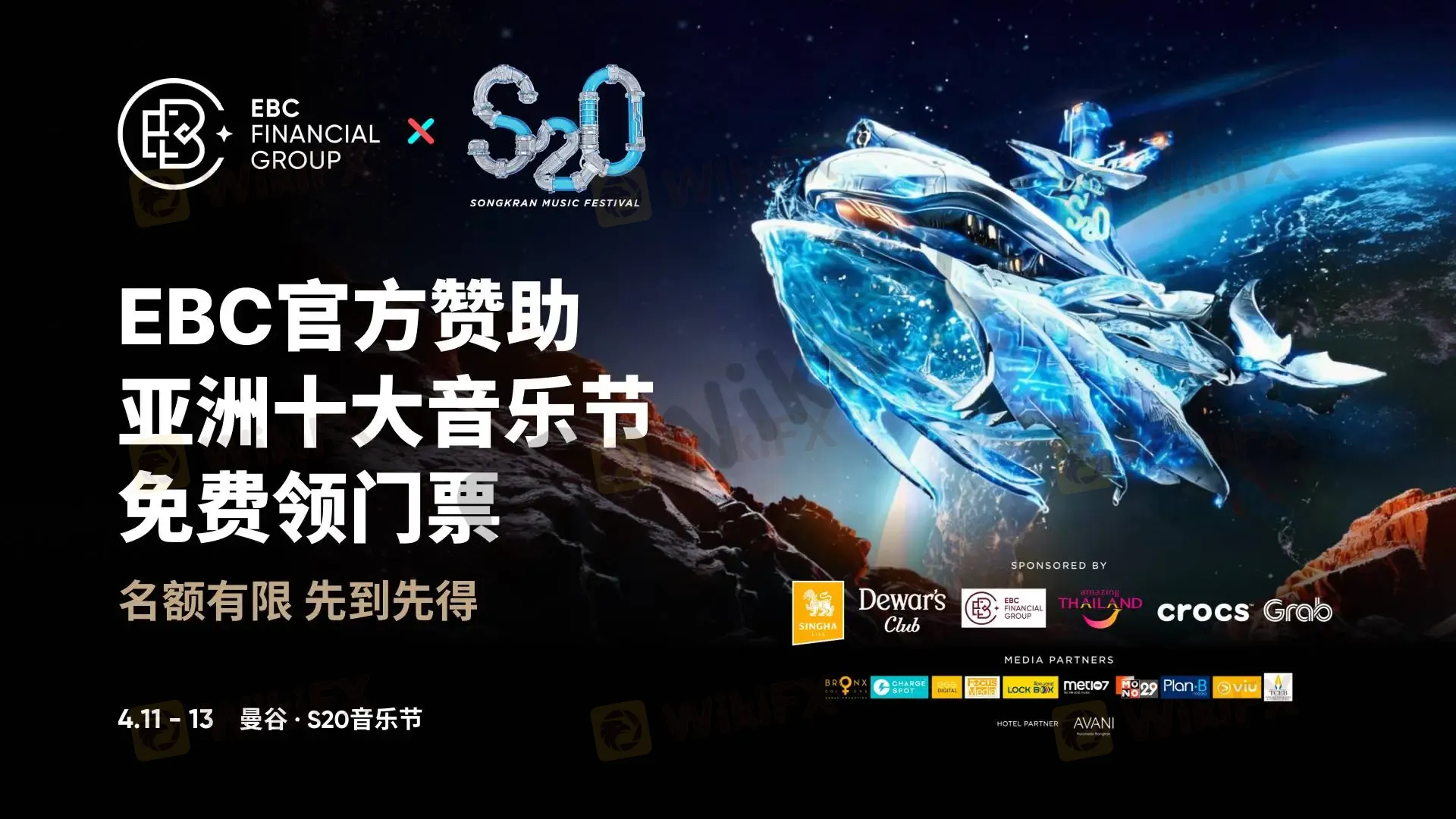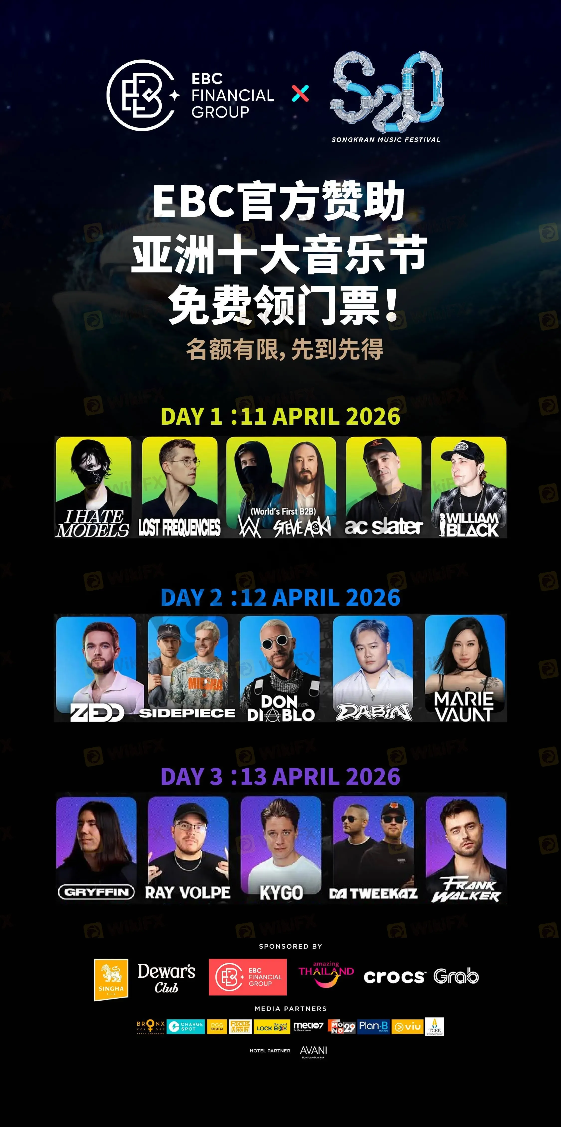 摘要:EBC金融集团成为S2O赞助商!作为亚洲十大音乐节之一,S2O是泰国泼水节期间最疯狂的年度盛事。全球百大DJ轮番炸场,数十万人同时泼水蹦迪,水柱与电音齐飞——这不仅是音乐节,更是亚洲夏天最顶级的视听盛宴!今年,EBC以官方赞助商身份深度参与,在S2O现场设有品牌专属展位,并准备了精彩互动活动,等你来打卡。为回馈全球客户的长期信任与支持,EBC特别推出——S2O音乐节门票免费送!全球客户专属福利,名