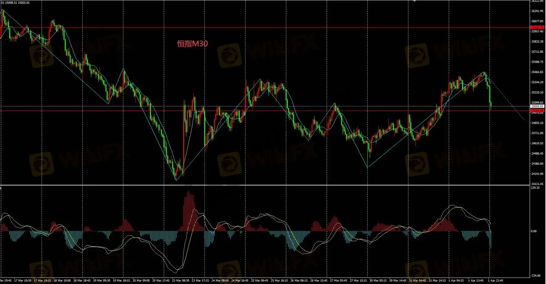 恒指M30空头不易介入,当前M30图表已经转为多头,只建议逢低买入操作。