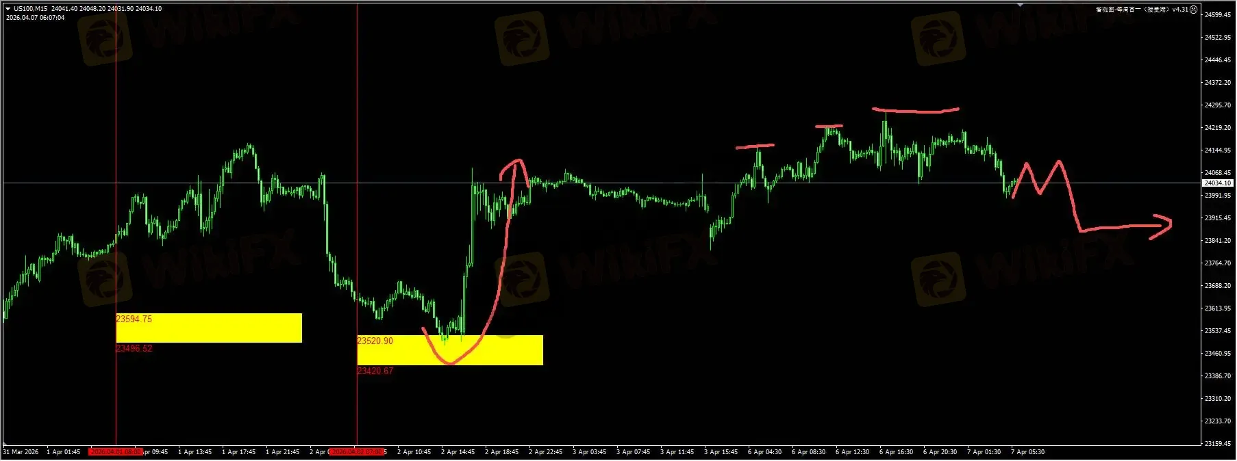 纳指:节前我们给到的黄色区域流动性清扫之后才会反弹的提醒,和价格实际走势基本符合。目前价格连续上扫流动性之后,受制于24080/24100的供给区阻力,此处是日内的多空分水岭。如果无法收复上述水平,那么价格将会继续24000和23800。详细位置请咨询插件。