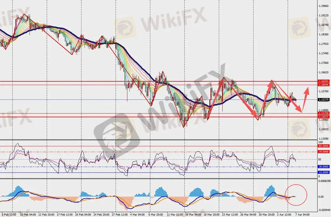 技术面:英镑兑美元H4级别低位徘徊,并在48日多空分界线附近运行。另一方面,MACD双线和量能柱开始在零轴下方缩量。四分之三的英国企业受到中东冲突影响,尽管企业对自身前景信心仍具韧性,但成本压力、通胀预期与供应链风险成为核心担忧。