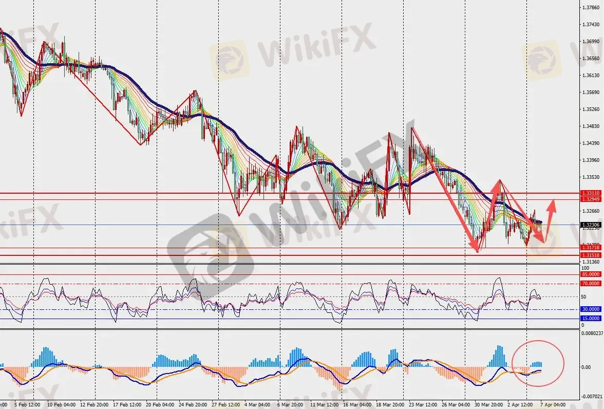第一阻力位:1.3290 第一支撑位:1.3180