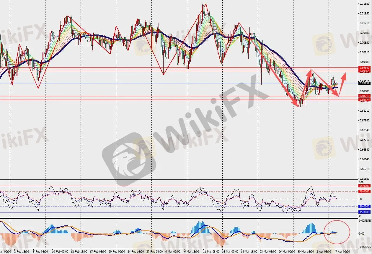 第一阻力位:0.6960 第一支撑位:0.6870