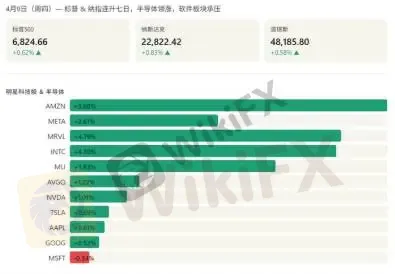 4 月 9 日美股三大指数延续强势反弹,标普 500 与纳指七连涨,在地缘局势缓和、油价回落提振风险偏好的背景下,AI 及半导体板块成为核心主线持续领涨,叠加全球能源转型需求,后续重点关注半导体与储能两大方向,短期上涨后若出现回调,均是优质布局机会。