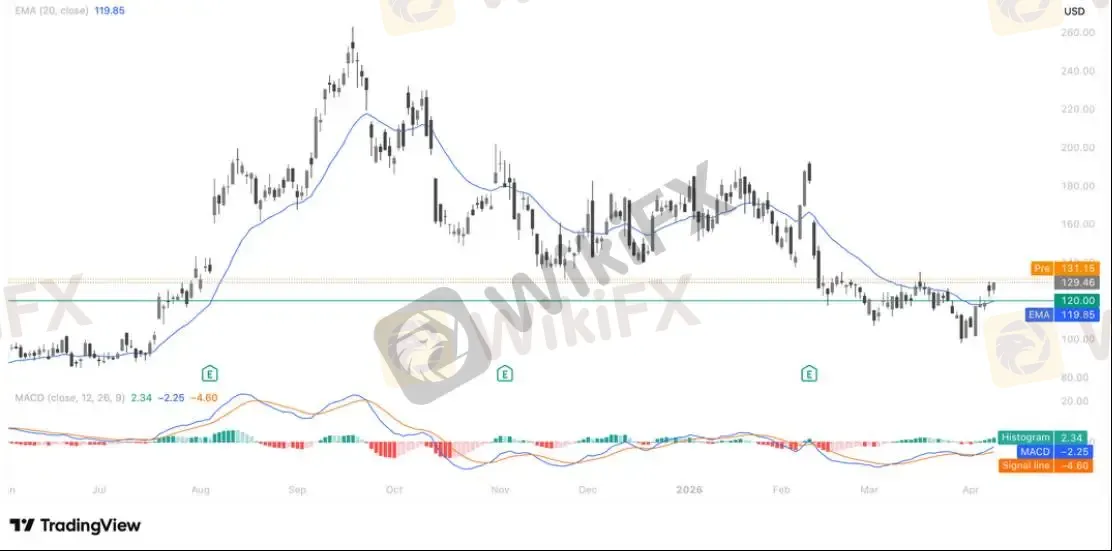 技术面上,股价经历深度回调后已在低位企稳反弹,成功脱离前期超卖区间,短期关键压力位于 130-135 美元一带,支撑则看 115-120 美元。若放量突破关键阻力可看高至 160 美元上方,回踩企稳仍是优质介入机会,中期结合基本面催化目标区间 140-170 美元,短期需警惕波动风险。