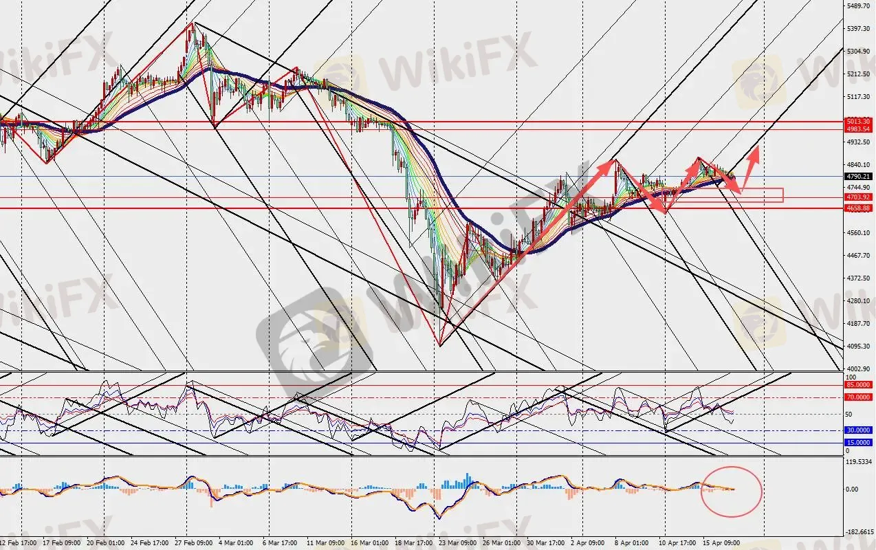 黄金H4级别震荡徘徊,MACD双线和量能柱在零轴附近收敛。黄金此前经历的几轮货币贬值周期分别出现在;大萧条时期,尼克松美元与黄金脱钩时期;21世纪初的反恐战争;以及次贷危机。货币贬值周期平均持续8.5年,而当前周期已进行3.5年,尚未过半。