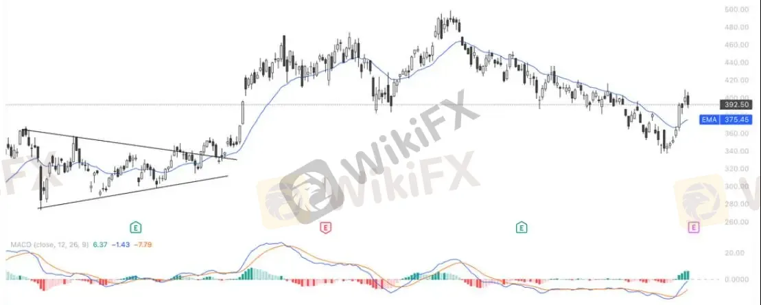 技术面来看关注400美元的得失,站稳将打开向上预期,失守将进一步回踩,根据周三盘后的财报决定短期方向,建议明朗之后参与。