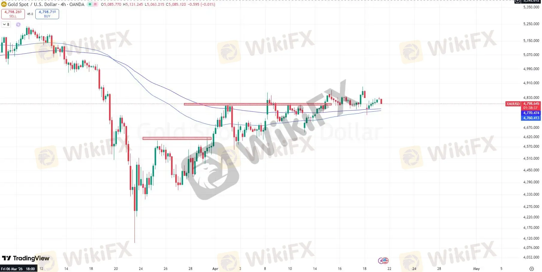 由于美国总统特朗普宣布对伊朗停战两周,市场的避险情绪大幅的降温,并让10年美债收益率开始步入下跌走势,并间接提振了对黄金的上涨空间。从技术分析可显示,黄金开始突破了4844的阻力区域,并预计短期内依然保持强势的上涨趋势,并建议大家持续布局做多,重点关注在4800的区域。