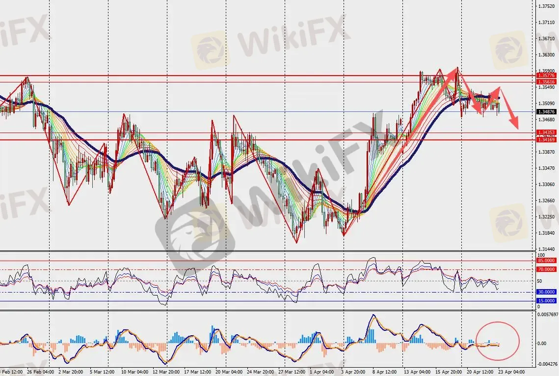 技术面:英镑兑美元H4级别震荡徘徊,并在48日多空分界线下方运行。另一方面,MACD双线和量能柱在零轴附近扩张。作为能源进口国,英国对中东局势高度敏感。冲突导致霍尔木兹海峡航运受阻,全球能源供应链中断,直接推高了英国的通胀预期。