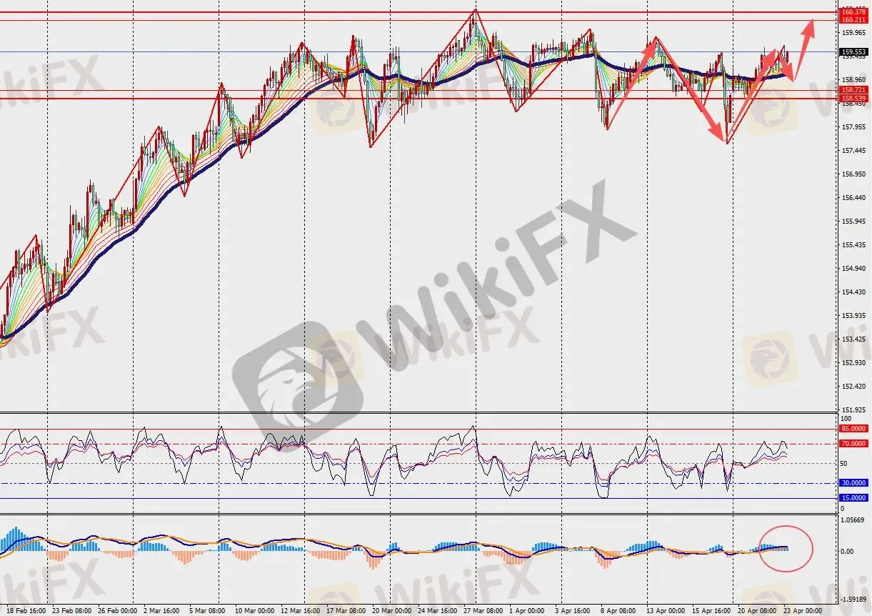 技术面:美元兑日元H4级别震荡反弹,并在48日多空分界线上方运行。此外,MACD双线和量能柱在零轴附近扩张。市场普遍预计,日本央行在即将召开的政策会议上将维持利率不变,这一预期在短期内限制了日元的反弹空间。