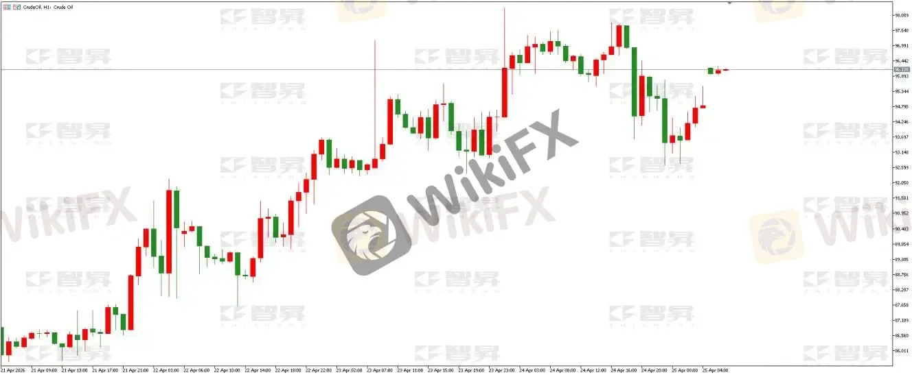 原油日线收小阳线,价格重新进入前期震荡区域,形成高位宽幅震荡是大概率事件。1小时周期形成箱体震荡,短线还有新高,日内可关注下方94.80美元一线的支撑。