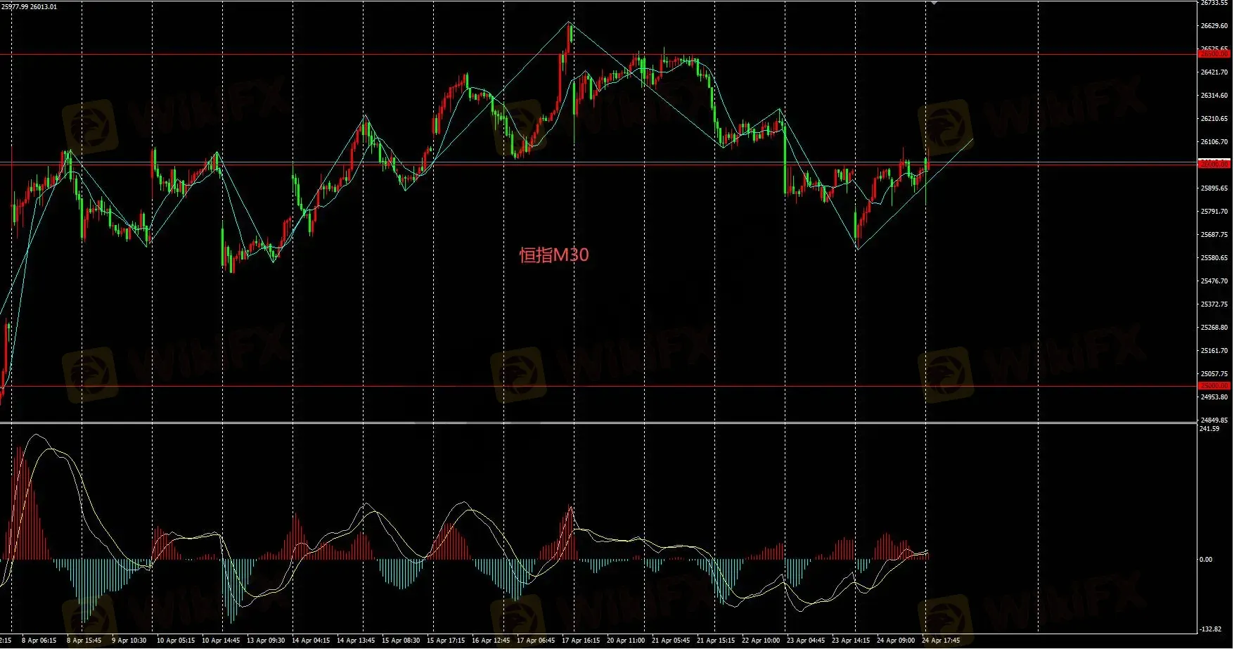 恒指M30看空,价格在26000下方采取逢高卖出操作,目标25500。
