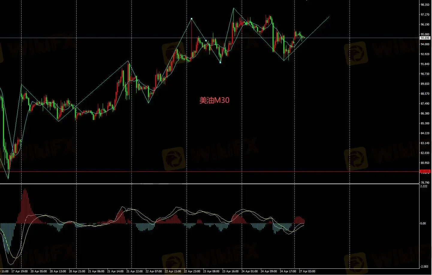 美油M30油价转为多头走势,当前为上涨走势的震荡结构,日内逢低买入操作。