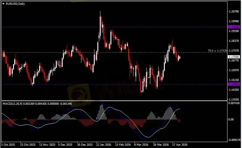 日线图显示欧元兑美元企稳反弹,当前承压于1.1740阻力。从MACD来看,快慢线死叉依旧,红色动能柱温和放量。汇价走势和动能柱的变化呈分歧。