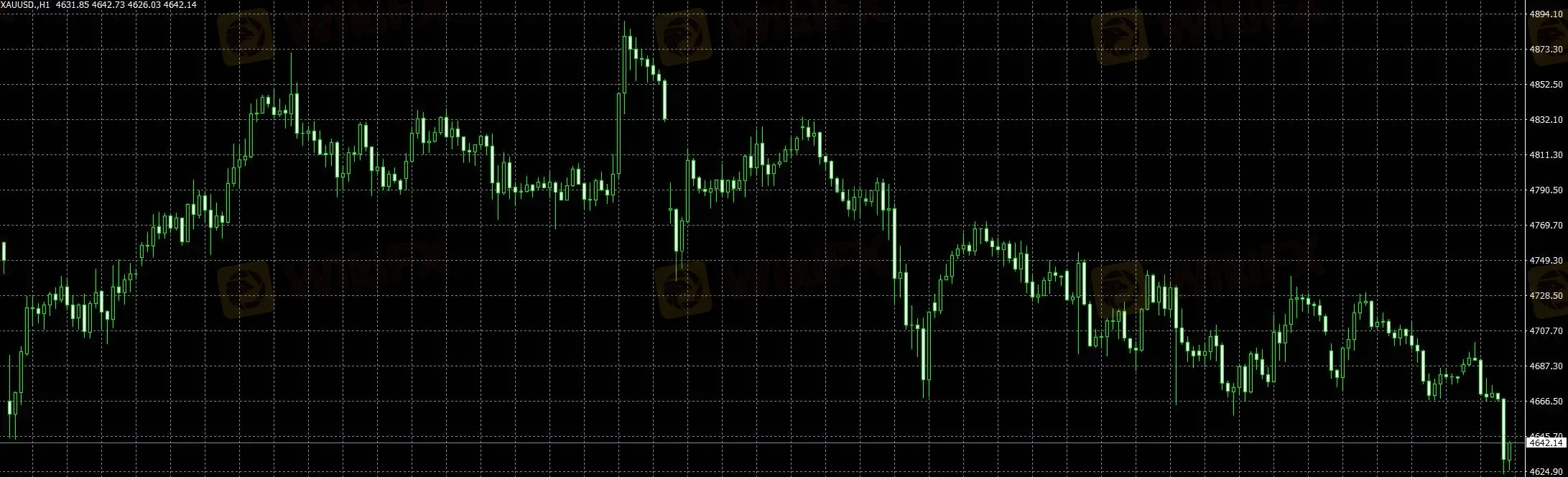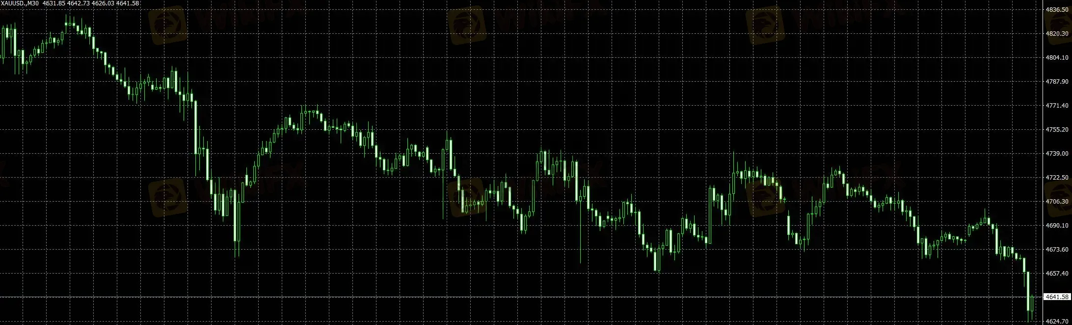 价格在连续震荡后选择向下破位,当前已经跌破前期低点支撑,并且形成连续阴线推进结构,整体呈现高点下移、低点不断刷新,趋势已经转为明确空头主导,短线若无法快速收复4680上方,后续仍有进一步下探空间。