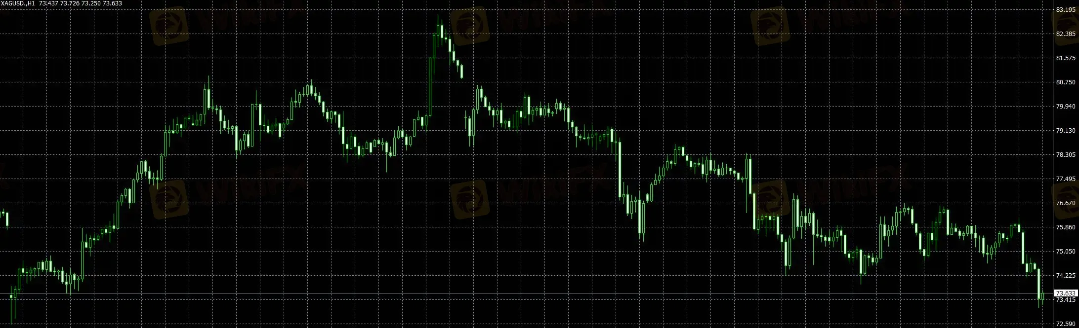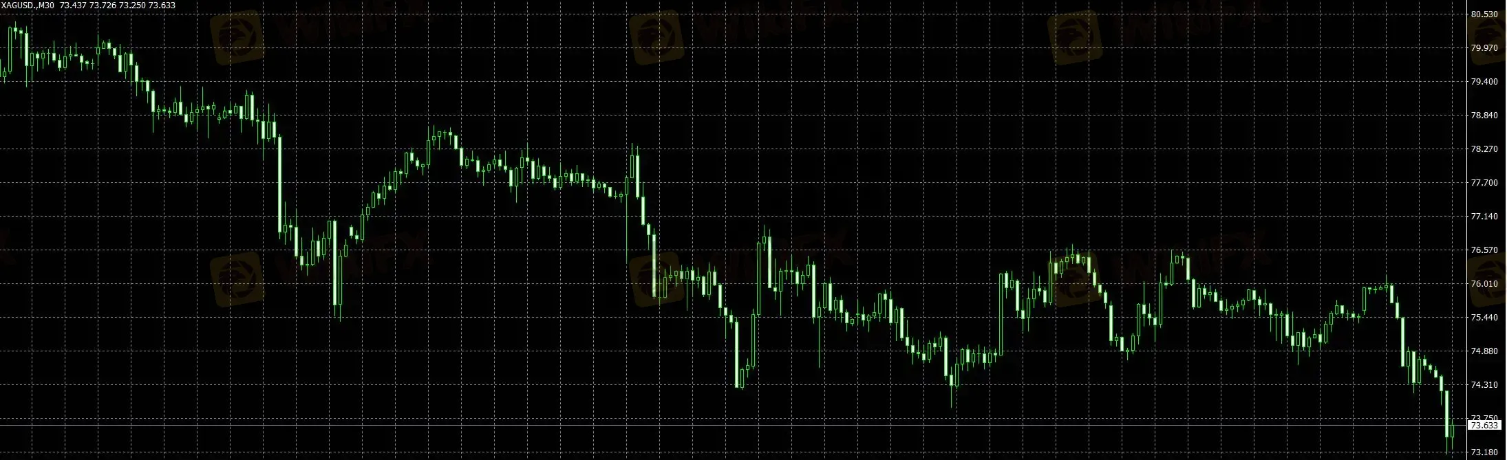 价格持续震荡走低,目前已经跌破前期低点区域,运行至73附近,结构上形成明显破位,下方空间被打开,空头趋势进一步强化。