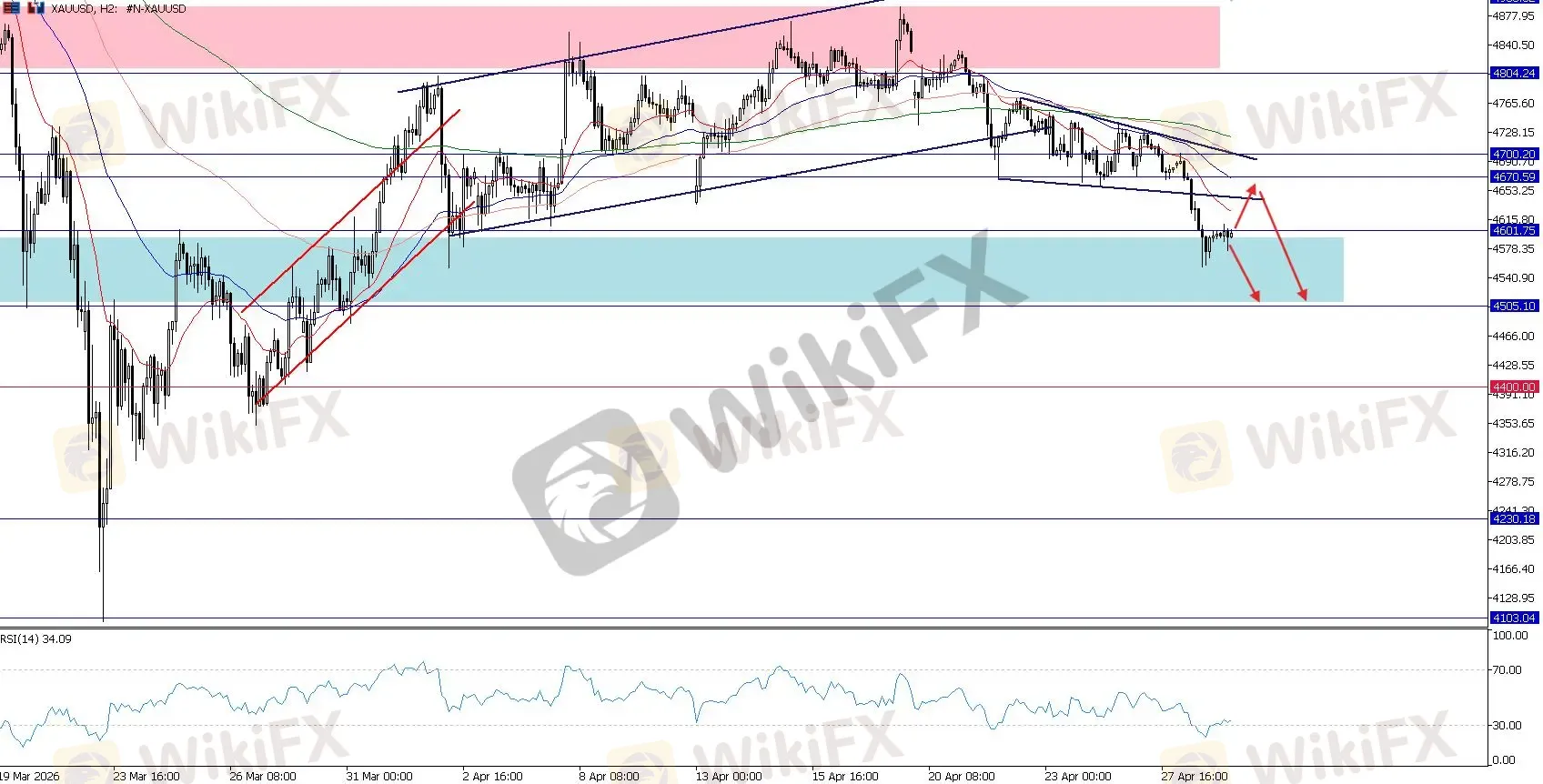 目前,4,500 至 4,600 美元区域依然是一个关键的支撑区。近期仍存在向 4,500 美元水平下行的风险,不过在进入 FOMC 决议公布前,预计将会出现剧烈的价格波动。