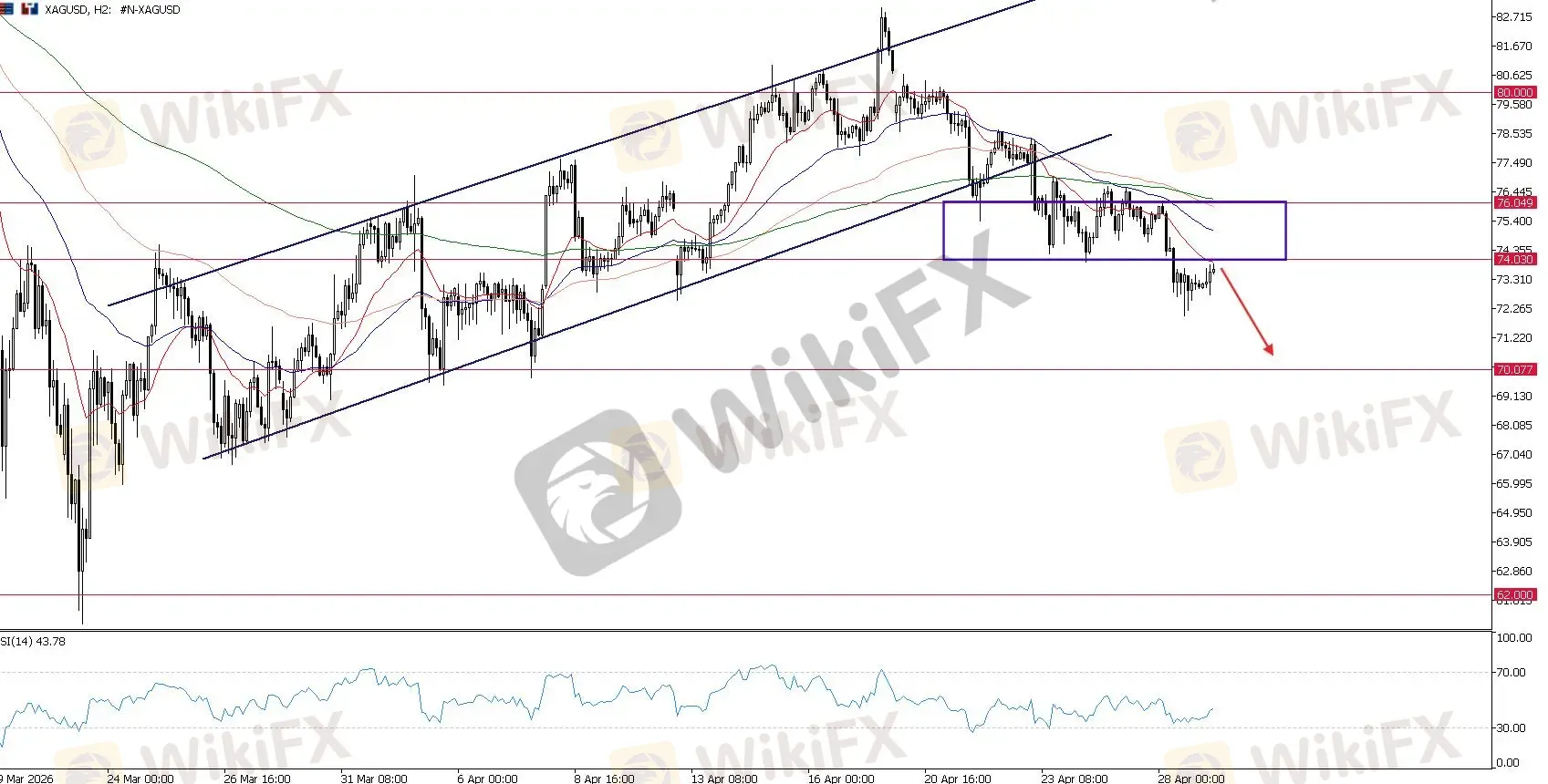 · 白银 (XAGUSD): 反映了黄金的下行轨迹。跌破 74.00 美元使白银极易受到向 70.00 美元关口更深度修正的影响,除非多头能够迅速收复先前的支撑位。