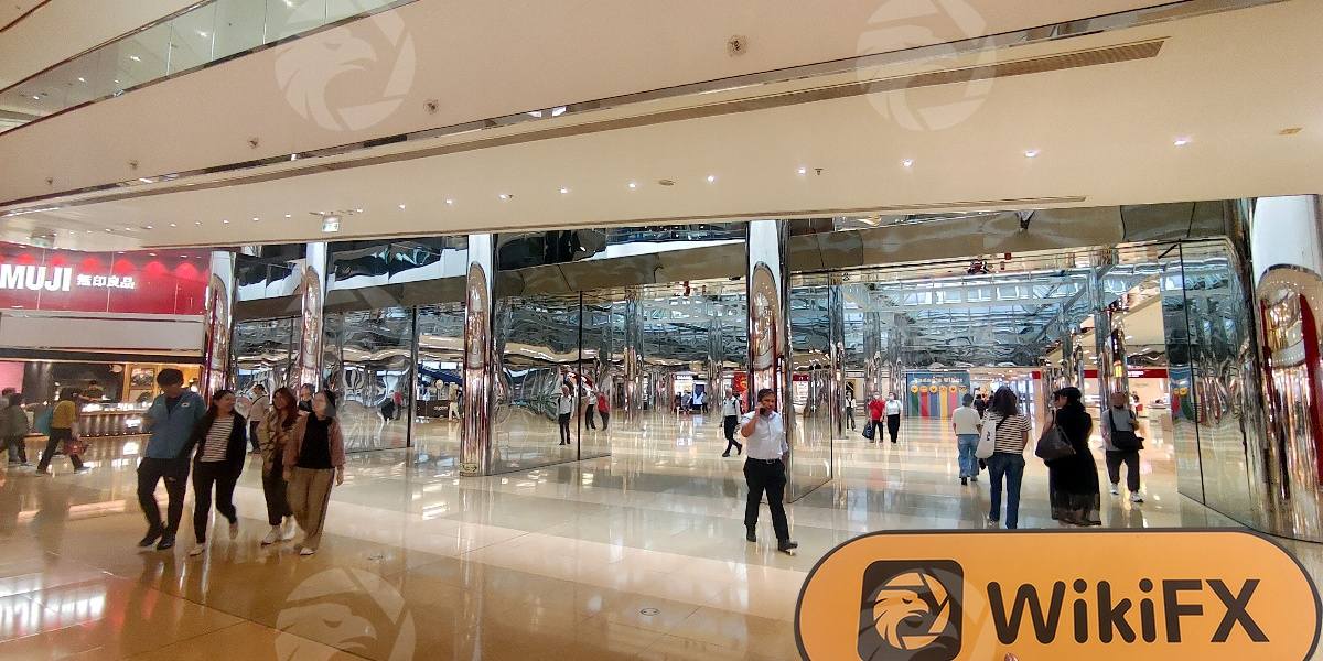 实勘人员到达后,发现并没有看到大楼的入口,眼前只是一个商场。该地点周边商业氛围浓厚,但却找不到交易商相关的大楼入口。在商场周边也未发现公司标识或相关信息。