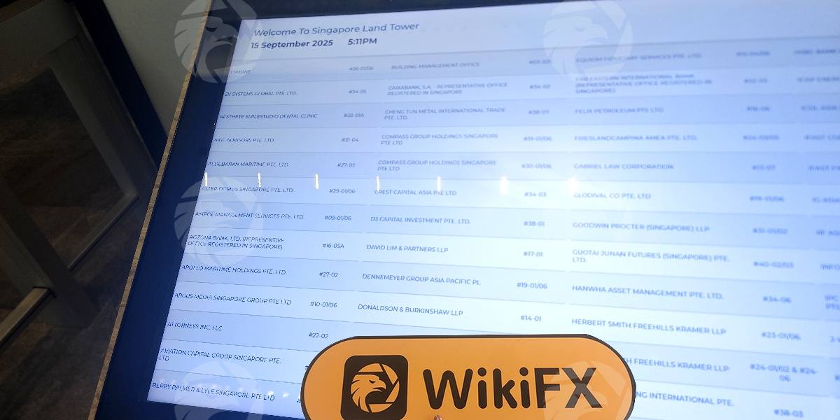 实勘人员按计划前往新加坡实地探访外汇交易商Aozora Bank,在其公开显示的展业地址所在大楼内的水牌上能看到该交易商的公司名称等信息,说明该交易商存在真实的展业场所。请投资者综合考虑后作出选择。
