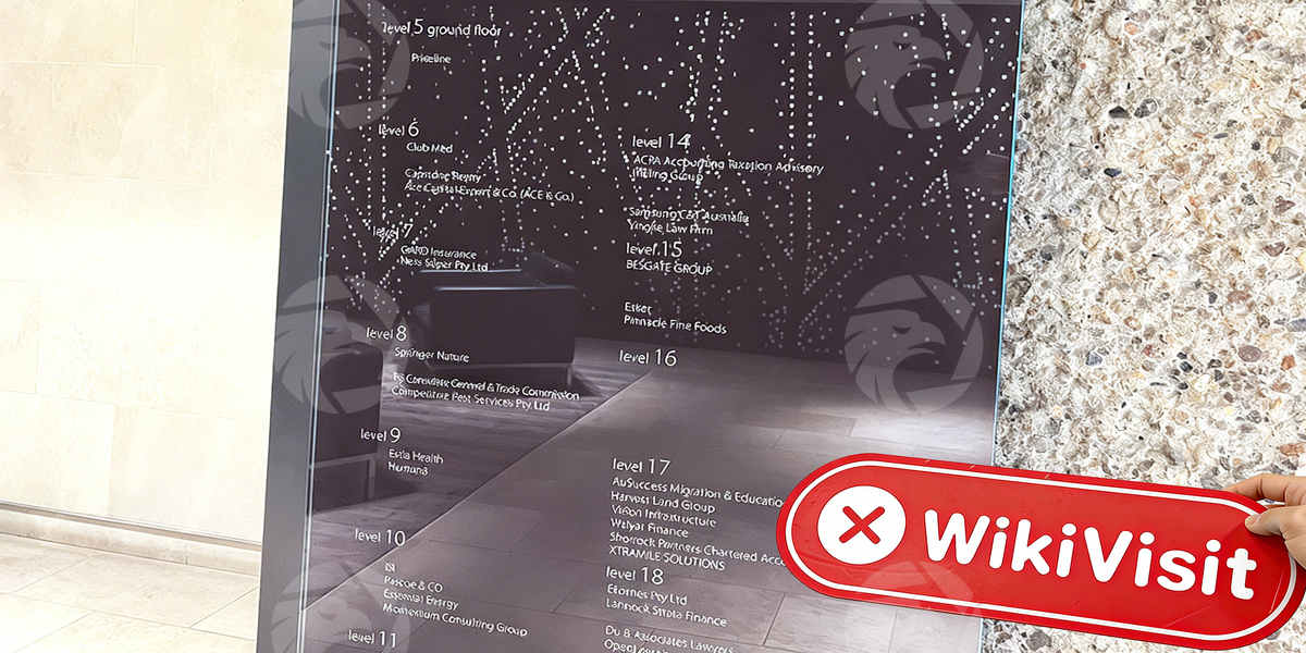 目标建筑位于悉尼市中心繁华地段,周边街道环境普通,无明显商业聚集特征。大楼外观为现代化写字楼结构,可清晰拍摄建筑全景。实勘员顺利进入大堂,大堂内设有访客登记处及楼层导览牌,但经仔细核查,导览牌中未列出“Sky Alliance Markets”的公司名称。