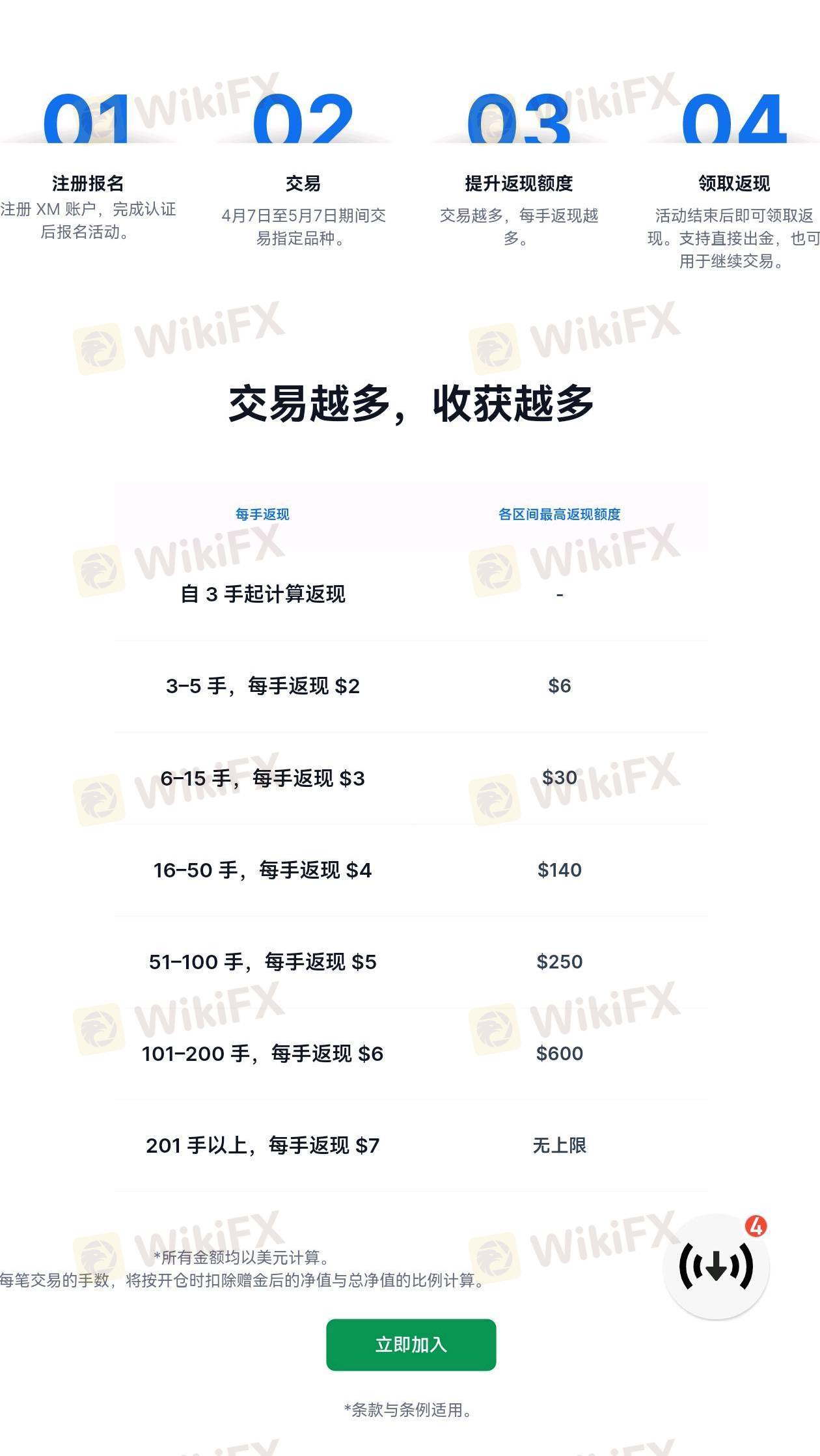 xm无限返现活动上线,交易量越大,获得金额越多。