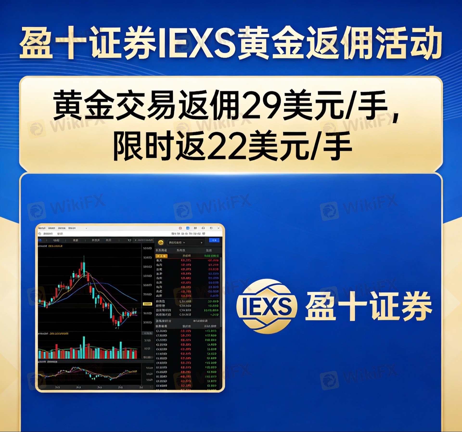 9. IEXS盈十证券 · 黄金高返政策点差29,返佣22,平仓即返多重权威监管,合作更有保障