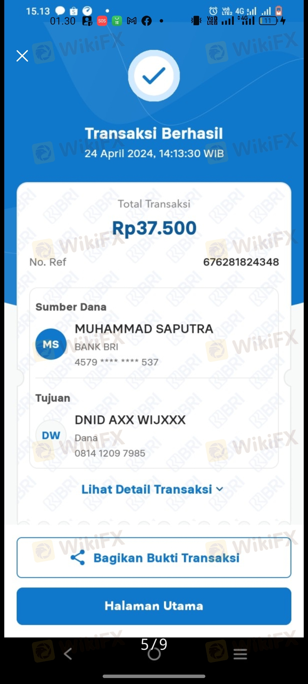 mohon transfer secara instan dan otomatis ke ewallat saya OVO